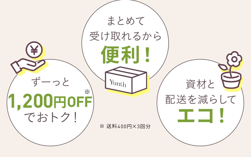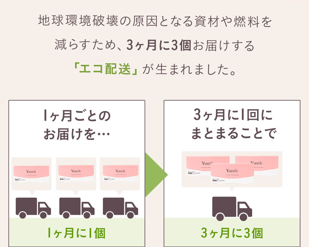 ・エコ配送コースのご解約はお電話でのみお受けしておりますので、Yunth お客様窓口までご連絡ください