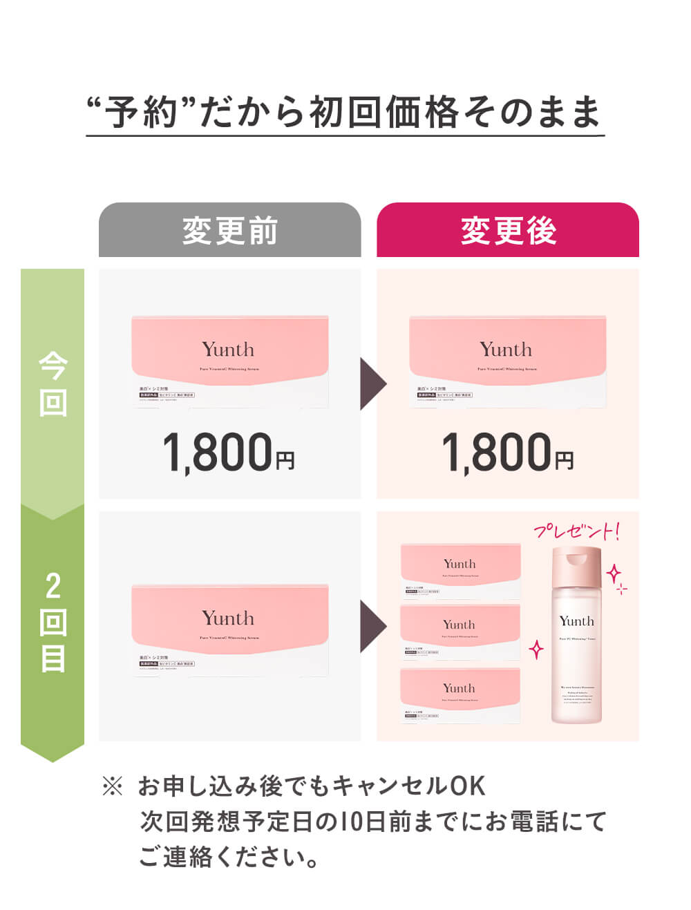 コース名:Yunth生VC美容液定期コース エコ配送(生VC美白化粧水本品プレゼント付き)