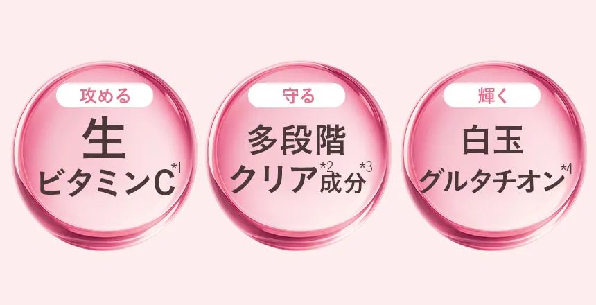 生ビタミンC*1+多段階クリア*2成分*3+グルタチオン*4配合